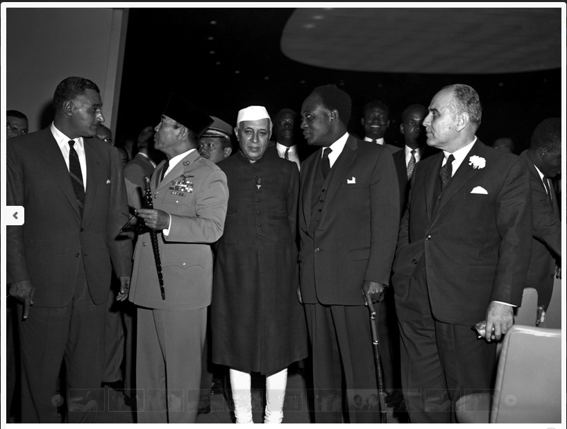 The founding fathers of the Non-aligned movement – Sukarno of Indonesia, Jawaharlal Nehru of India, Josip Broz Tito of Yugoslavia, Gamal Abdul Nasser of Egypt, and Kwame Nkrumah of Ghana –  the “Initiative of Five” defended the Charter of the United Nations and championed the voice of colonized peoples and territories around the world.