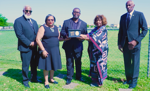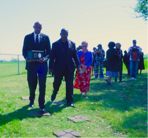 Rodney F Byrd Funeral Directors, together with representatives from the Center for the Healing of Racism, Friends of Sugarland 95, and World Colonization Memorial, carried a wooden urn filled with soil that is believed to still contain the sweat, tears, and blood of those who died in Sugarland.
