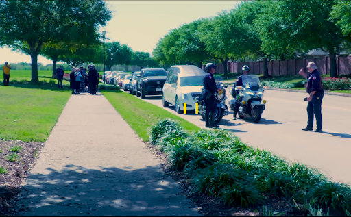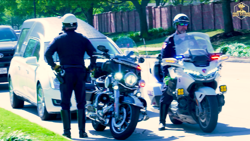 Deputies from Fort Bend County Precinct 4 are preparing to escort the funeral procession from the Old Imperial Farm site to a nearby church, allowing the community to pay their respects and support the grieving descendants. The escort police officers were there to grant the funeral procession the right of way at intersections and other traffic points.